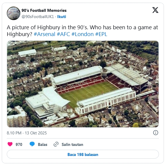 Perjalanan panjang itu dimulai pada 6 September 1913 saat Arsenal menaklukkan Leicester Fosse 2–1, dan ditutup indah pada 7 Mei 2006 ketika Thierry Henry mencetak hat-trick melawan Wigan. Kepindahan ke Emirates Stadium memang membuka lembaran baru, tapi kenangan di Highbury tetap menjadi warisan abadi klub London Utara ini.